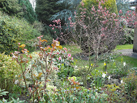 Growing in the middle on black bench are annuals for hanging baskets and pots. Busy Lizzys-Fushias-Lobellia.